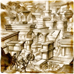 Rhi'anon was abandoned for centuries until Balor the Leveller came into the world. After freeing the Trow from their iron prisons, he had his fortress built within the old city, and led the Dark towards a path of destruction. The city would also serve as the final battleground for the Great War when Balor fell to Alric and the Legion.
